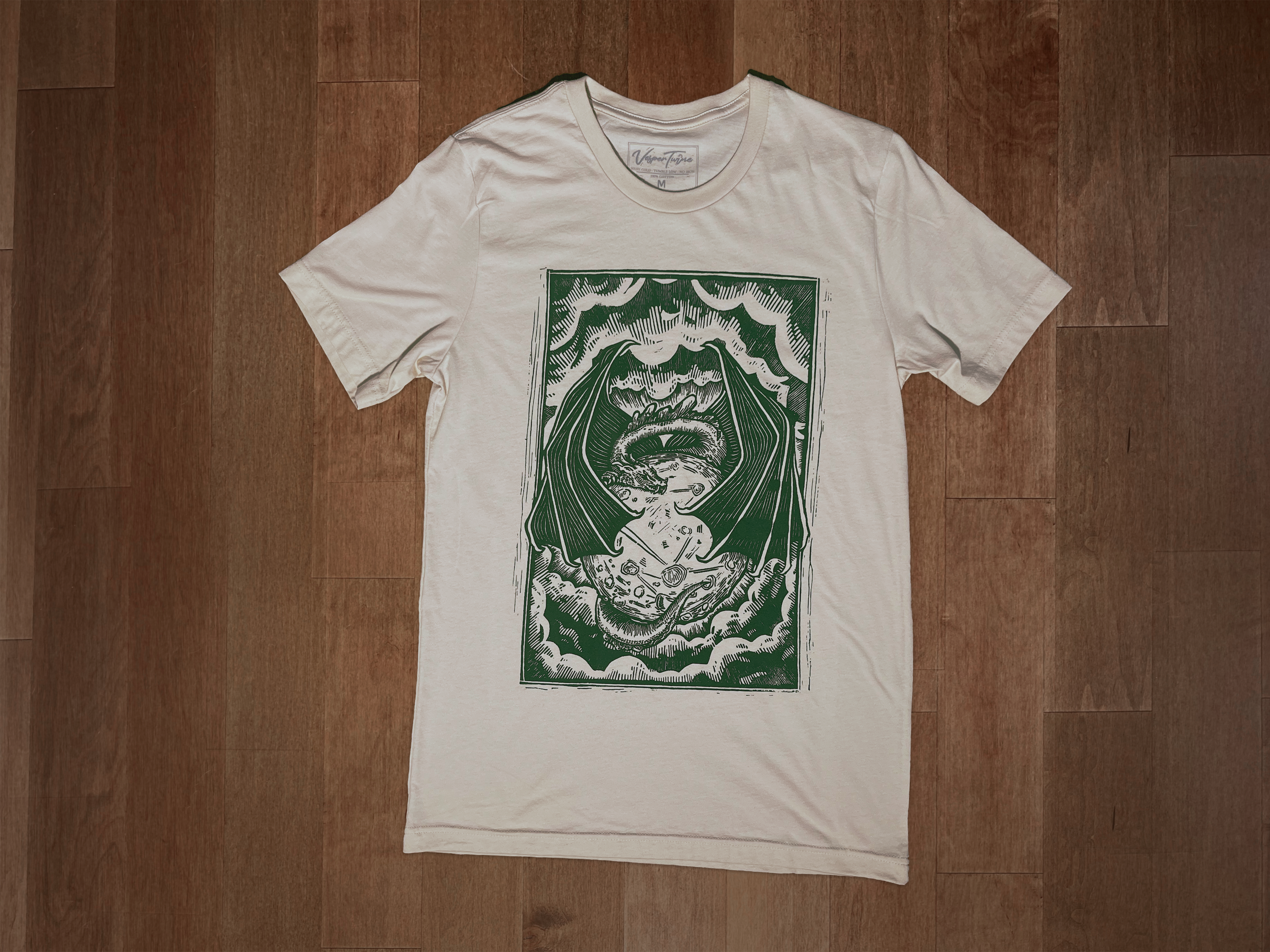 A Grade - These pieces are perfect quality! They found their way onto this listing by having a slightly altered ink color, being an experimental color way, or getting discontinued. Garments may have one large print on the back with a small pocket print on the front, a printing method that has been since been discontinued on VesperTwine.