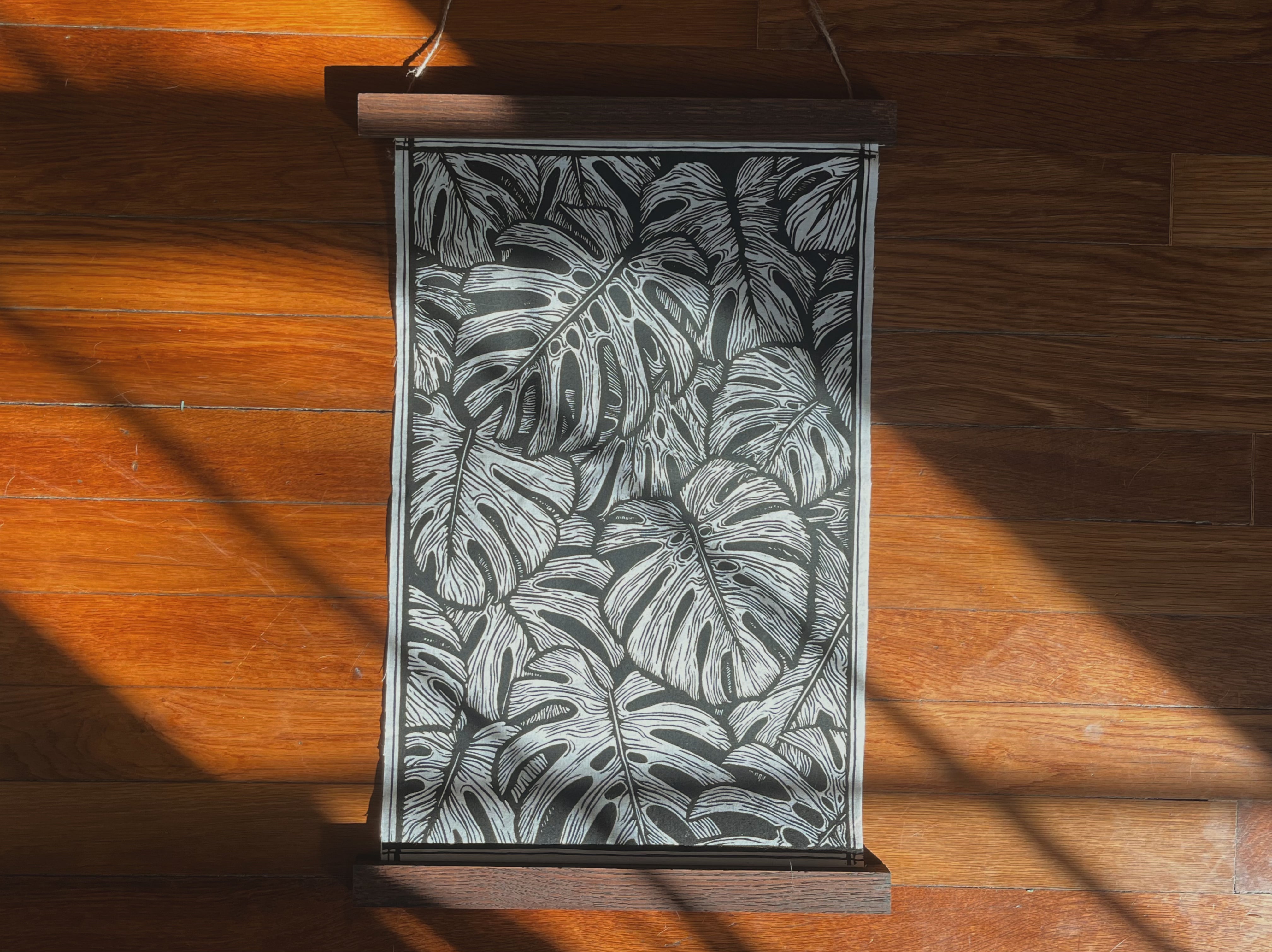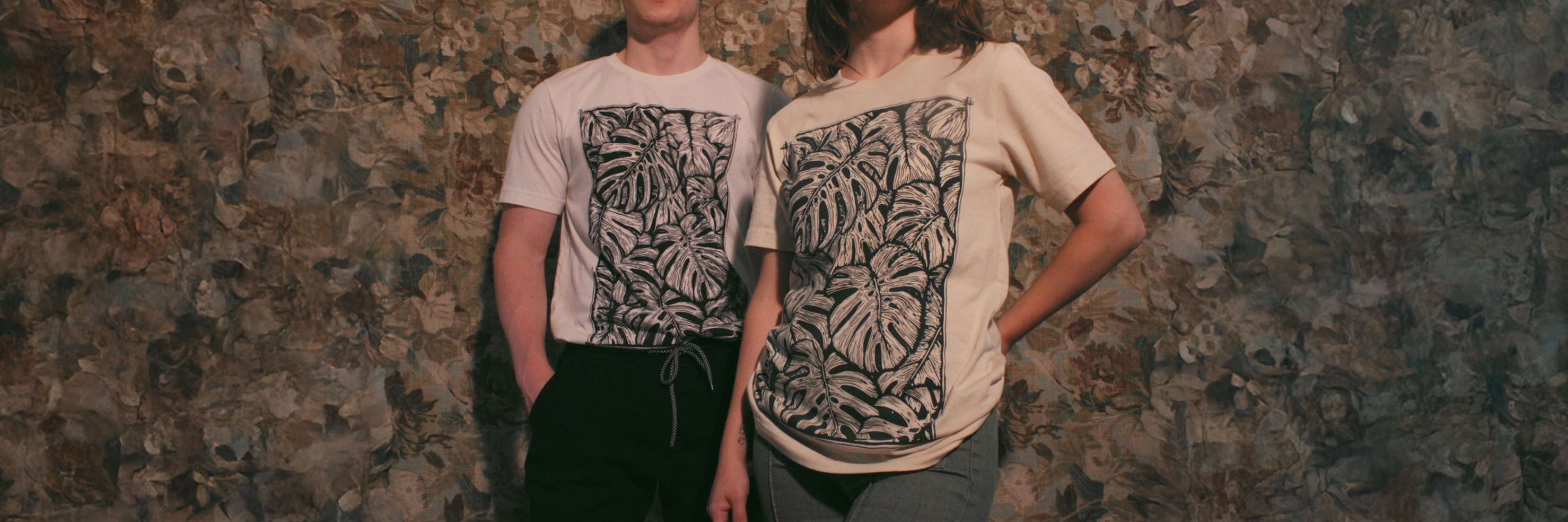 On the left is an example of a t-shirt handmade by Cali using the traditional block-printing method. Each one of these t-shirts is unique and full of character. On the right, is the same t-shirt made by a family-owned screen-printing company. Every t-shirt is carefully crafted to retain the authentic block-printed look while bringing new life to the design.